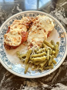 Dip chicken in egg and then coat with crispy breading. Sprinkle with Italian seasoning. Place in air fryer. Air fry for 25 minutes, flipping half way through. Once flipped, top chicken equally with sauce, then add cheese. Finish air frying until cheese is brown and bubbly. If using an oven, preheat to 375 degrees for 25 to 30 minutes with the same method.